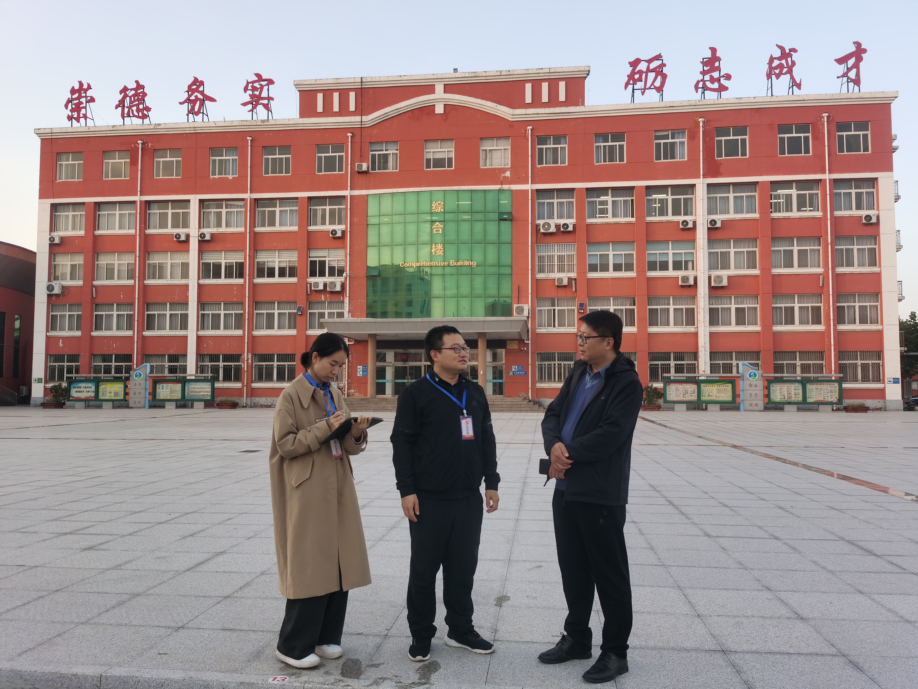兴福镇纪委紧扣以“办好人民满意教育”为目标,将校园优化提升纳入监督重点。近日,兴福镇纪委对镇域内学校基础设施维护、改造进度与质量开展嵌入式、跟进式监督检查。从中小学校园安全和膳食经费管理监督到校园环境提升工程,兴福镇纪委聚焦师生关切,通过定期调研、精准督办、跟踪回访等方式,持续压实职能部门责任、提升工作效能,推动解决师生“急难愁盼”,用“监督力度” 提升师生“幸福温度”。图为兴福镇纪委工作人员对博兴四中兴福校区楼前广场维修改造工程开展监督检查。