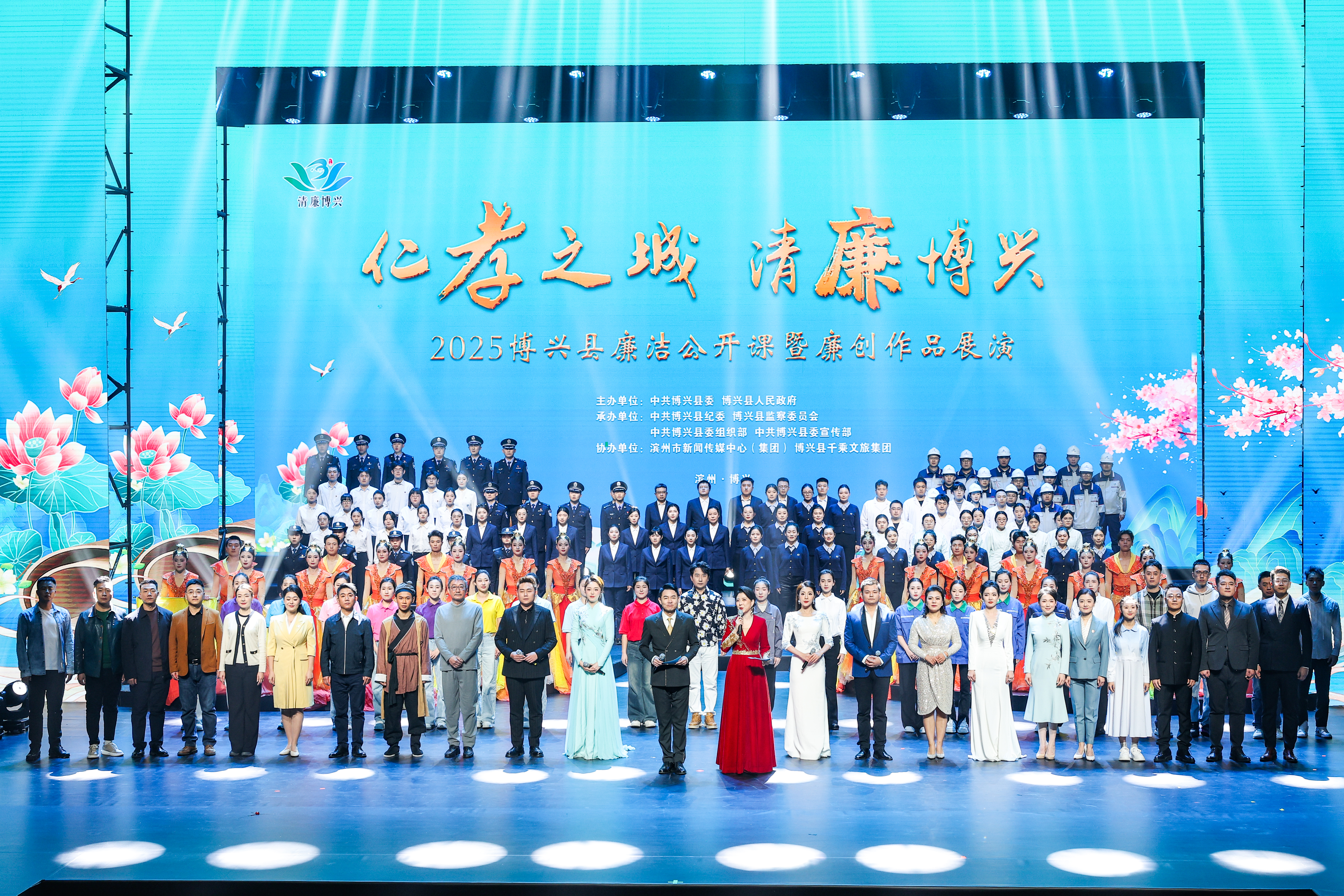12月26日晚,“仁孝之城 清廉博兴”2025博兴县廉洁公开课暨廉创作品展演在市民文化中心大剧院举办。此次公开课由中共博兴县委、博兴县人民政府主办,县纪委监委、县委组织部、县委宣传部承办,滨州市新闻传媒中心(集团)、县千乘文旅集团协办。全县1000余名党员干部现场接受教育。