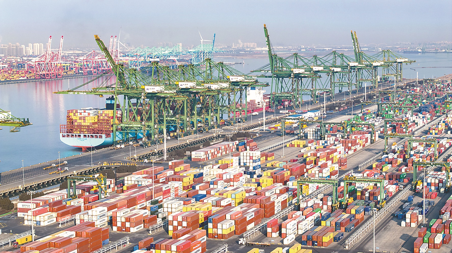 作为我国北方重要的对外贸易口岸和国际枢纽港,天津港依托独特区位优势,不断提升港口功能,高水平打造京津冀海上门户。数据显示,天津港2023年完成集装箱吞吐量2217万标准箱,同比增长5.5%,创历史新高。图为天津港太平洋国际集装箱码头。新华社记者 赵子硕 摄