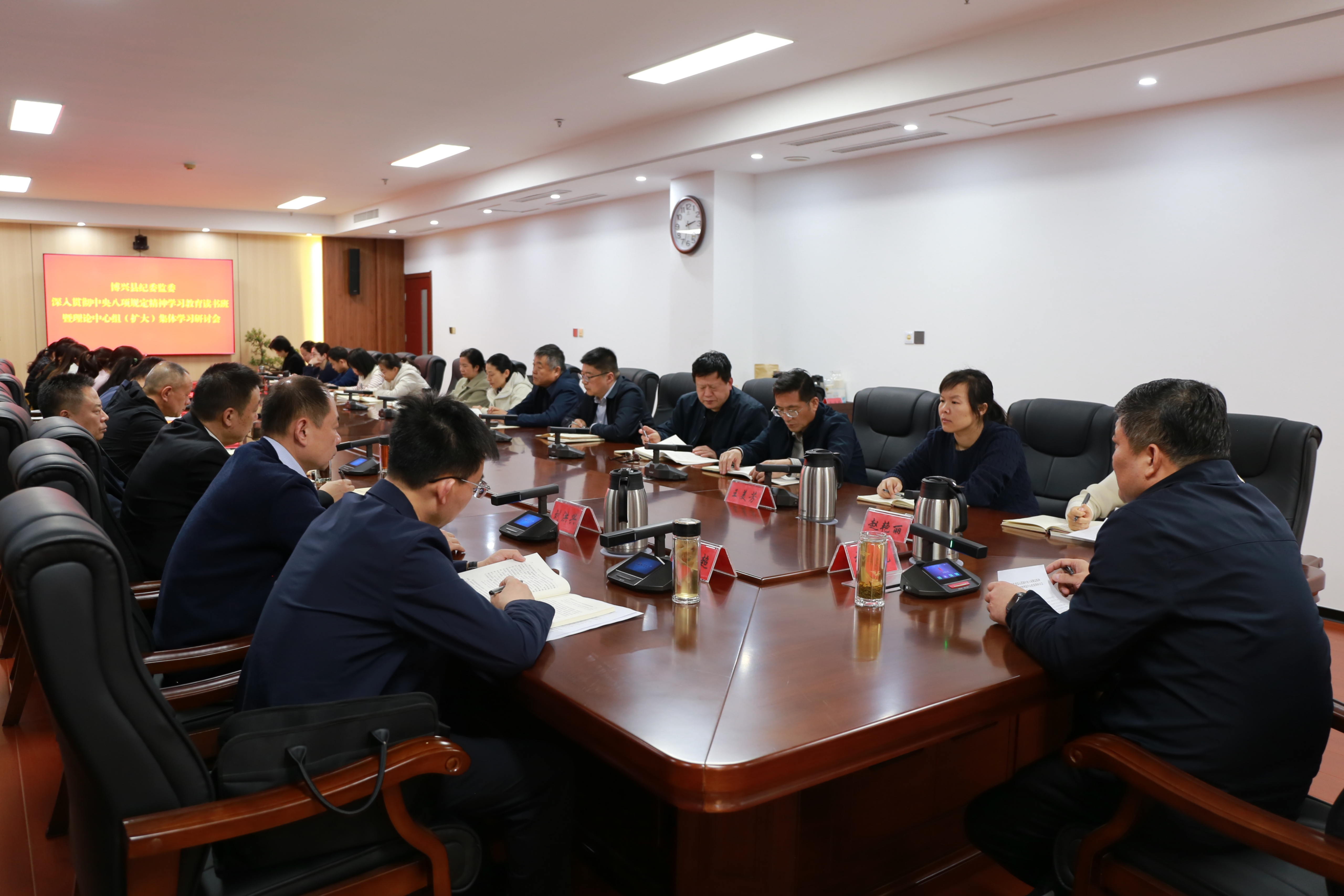 始终把政治建设摆在首位,推动理论武装与纪律教育深度融合。把习近平总书记重要讲话和重要指示批示精神作为“第一议题”、理论学习中心组学习的重要内容,用党的创新理论指导纪检监察工作,全年开展县纪委常委会“第一议题”学习24次,理论学习中心组集体学习研讨12次。扎实开展深入贯彻中央八项规定精神学习教育,通过专题党课、纪律讲堂、案例解读等形式,引导干部原原本本学、联系实际悟,切实把铁规矩、硬杠杠转化为思想自觉和行动自觉。