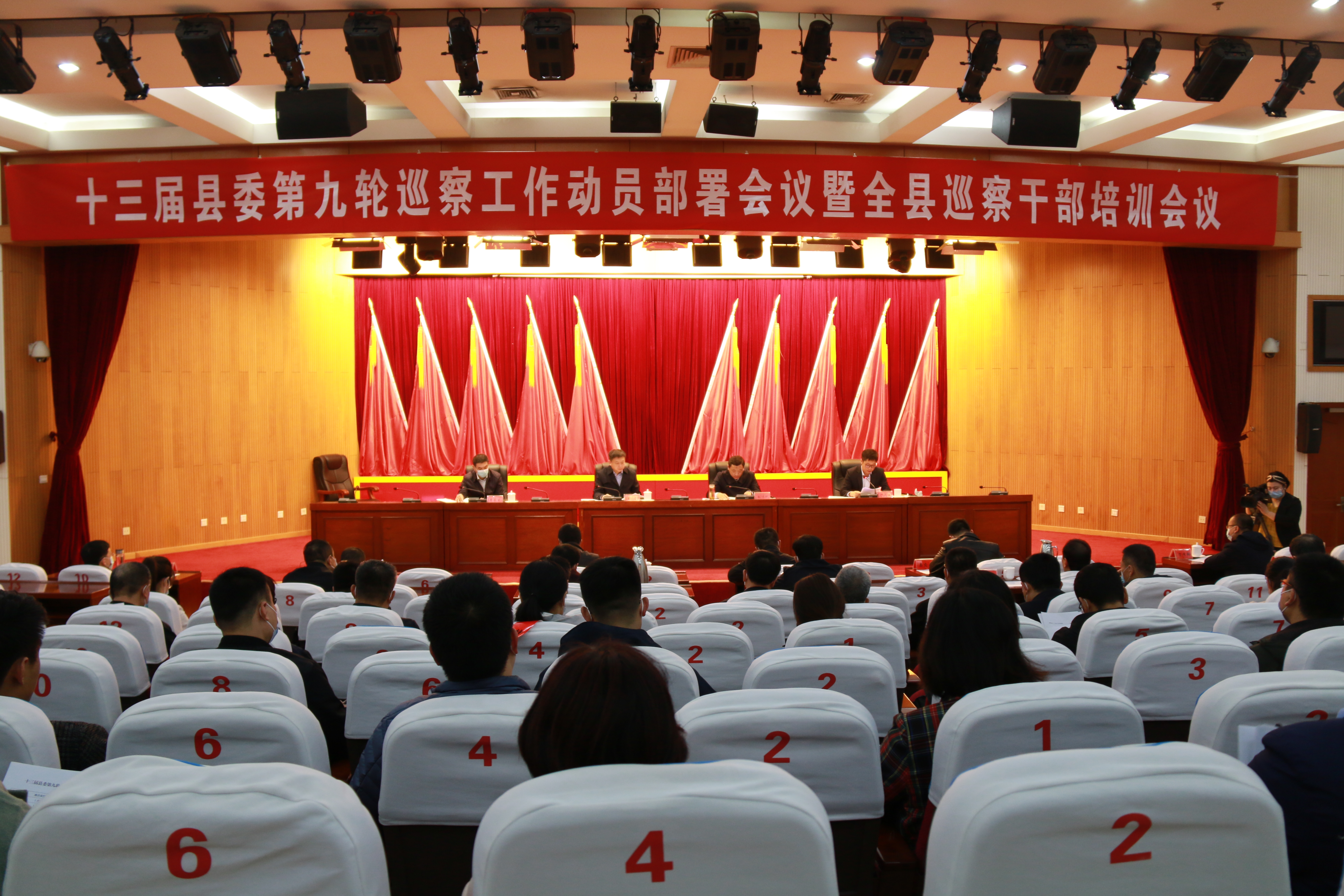 县委巡察工作领导小组成员,被巡察党组织主要负责人,县纪委监委派驻纪检监察组组长,县委巡察办、县委第一至第四巡察组、意识形态专项检查组全体人员参加会议。