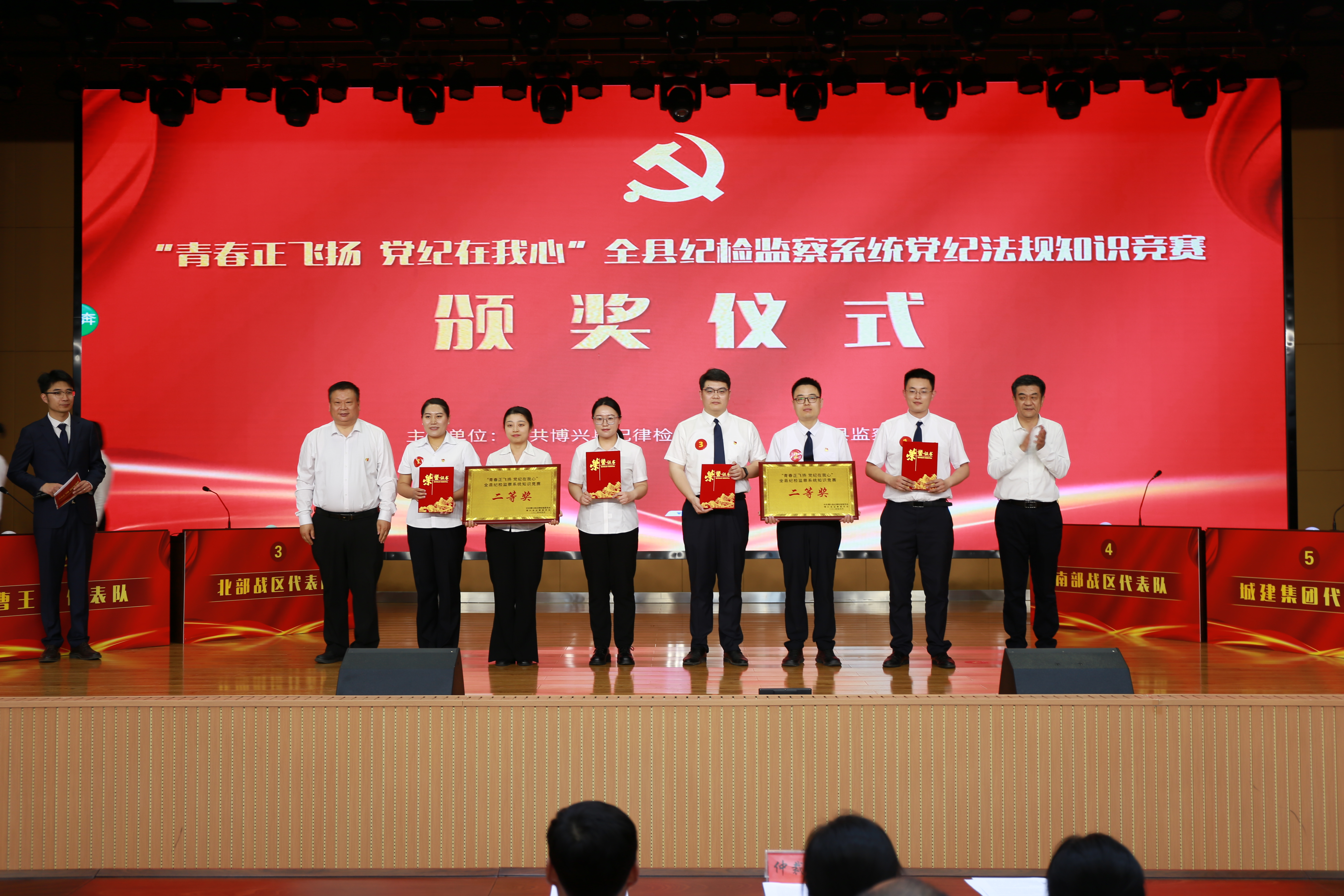 本次竞赛分初赛和决赛,广大纪检监察干部积极报名,踊跃参加,来自县委巡察机构、县纪委监委机关部门单位、三个作战区、国企纪委、镇(街道)纪(工)委的17支队伍参赛,根据初赛笔试成绩选出6支队伍进入决赛。决赛分为“步步为赢”必答题、“眼明手快”抢答题、“绝处逢生”风险题和“现场互动”四个环节。活动中,6支队伍的18名选手热情高涨,争先恐后,在紧张有序的氛围中,用实力上演了一场脑力和速度的精彩对决,赢得了观众阵阵掌声和点赞。观众互动答题环节,台下观众争先答题,气氛活跃。竞赛经过激烈角逐,最终产生一等奖一名,二等奖两名,三等奖三名,由出席本次活动的领导为获奖队伍颁发奖牌、证书。