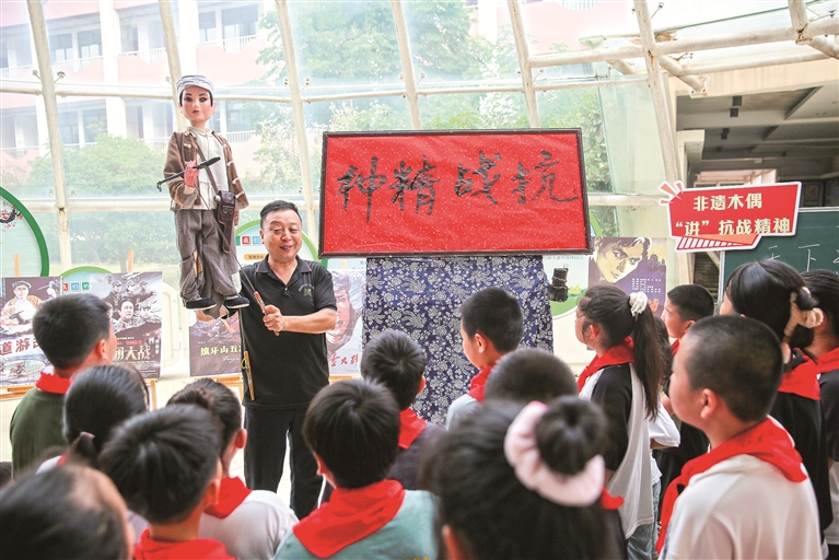 9月1日,江苏省如皋市如城小学“开学第一课”爱国主义教育思政课堂上,学生在聆听抗战故事。 图片来源:视觉中国