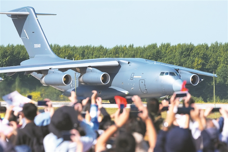 观众在现场拍摄运油-20A。 新华社记者 许畅 摄