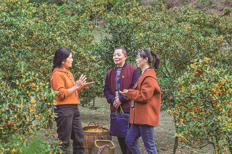 福建省松溪县纪委监委以乡村振兴资金使用监管整治为切口,紧盯资金分配、项目申报等环节,着力发现和纠治群众身边不正之风和腐败问题,为群众增收致富保驾护航。图为近日,该县纪检监察干部在花桥乡官后村山金柑种植基地了解情况。陈炊 摄