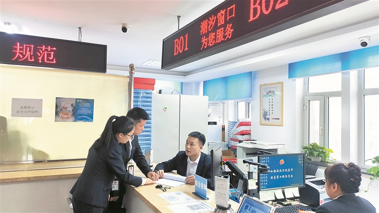黑龙江省齐齐哈尔市纪委监委工作人员聚焦优化营商环境,督促相关部门履职尽责,监督保障各项惠企政策落地落实。图为近日,该市建华区纪检监察干部在区行政审批大厅了解相关情况。尹鹏飞 摄