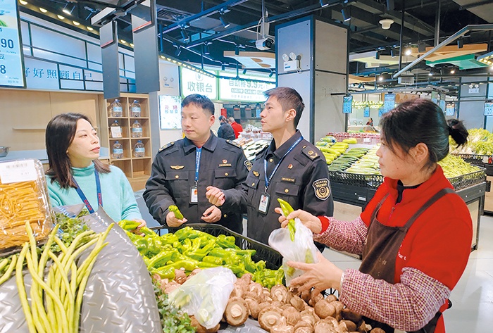 2026年首个工作日,安徽省巢湖市纪委监委组织纪检监察干部深入生产生活一线开展监督检查,压实职能部门监管责任,保障群众“米袋子”“菜篮子”产品稳定安全供给。图为该市纪委监委驻市发改委纪检监察组联合市场监管部门前往商超走访了解有关情况。吴双德 摄