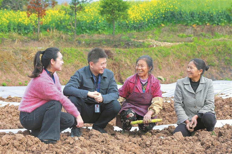 重庆市长寿区纪委监委紧盯高标准农田建设工程质量、资金使用、设施管护等关键环节,深入生产一线开展“嵌入式”监督,督促职能部门切实守好“责任田”。图为近日,该区纪检监察干部在云台镇八字村向群众了解情况。 彭俊华 摄